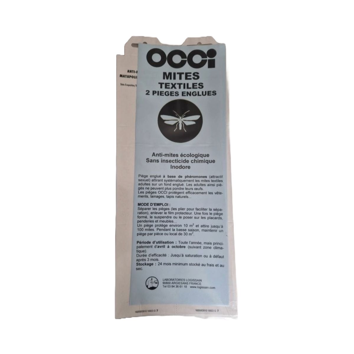Le piège mites textiles OCCI est un piège englué équipé d’une pastille-appât à phéromones. Cet attractif sexuel attire les mites textiles adultes, connues pour se nourrir de tissus naturels et de fourrures. Une fois capturées sur la surface engluée de 19 × 10 cm, les papillons ne peuvent plus pondre leurs œufs, ce qui interrompt le cycle de reproduction.